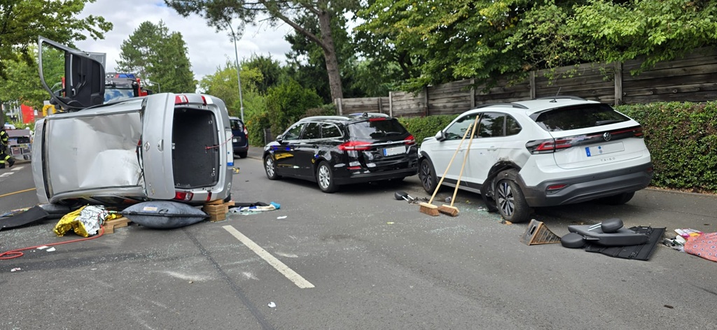 Die Einsatzkräfte fanden einen Verkehrsunfall mit insgesamt vier beteiligten PKW vor, wobei zwei davon am Straßenrand geparkte PKW waren.