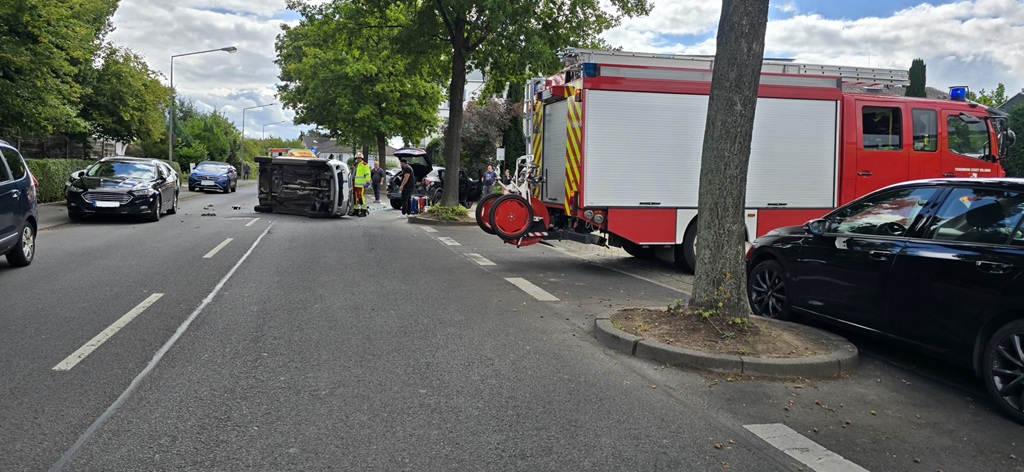 Ein PKW stand abseits der Fahrbahn, ein weiterer lag auf der Seite. In dem liegenden PKW war eine Person eingeklemmt.
