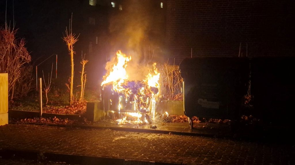 Bei Ankunft fanden die Kameraden einen in voller Ausdehnung brennenden Müllcontainer vor.